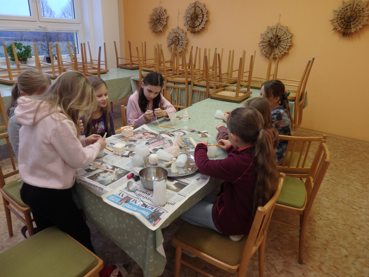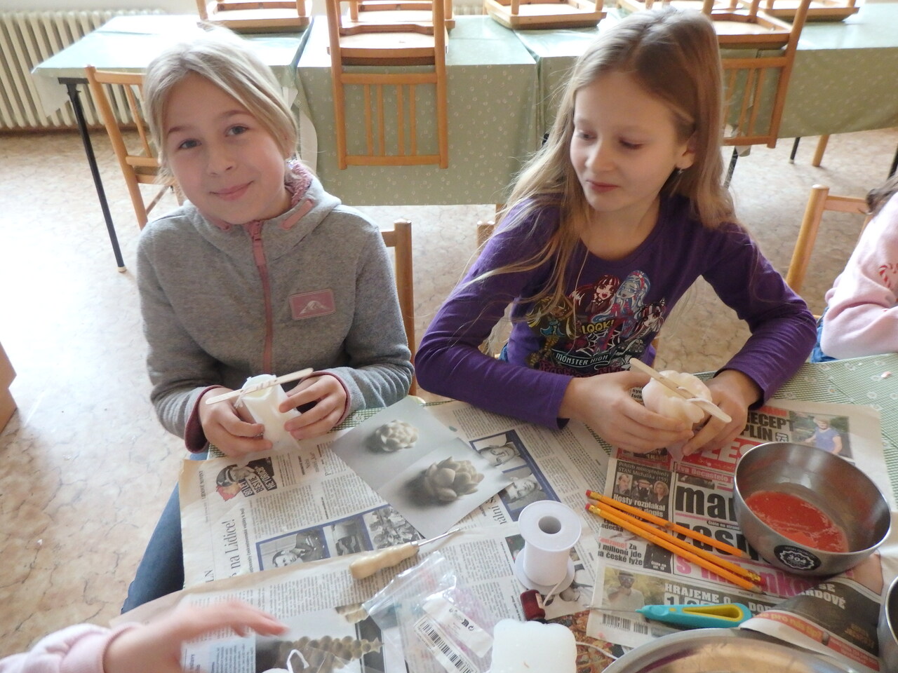 Vánoční atmosféru čtvrťáci přivolali výrobou svíček. Roztavený vosk nalili do formiček, přidali knot a čekali, až celá hmota zatvrdne. Někteří vyrobili svíčku barevnou. Všechny se dětem povedly. Budou zdobit vánoční stůl nebo se stanou zajímavým dárkem.