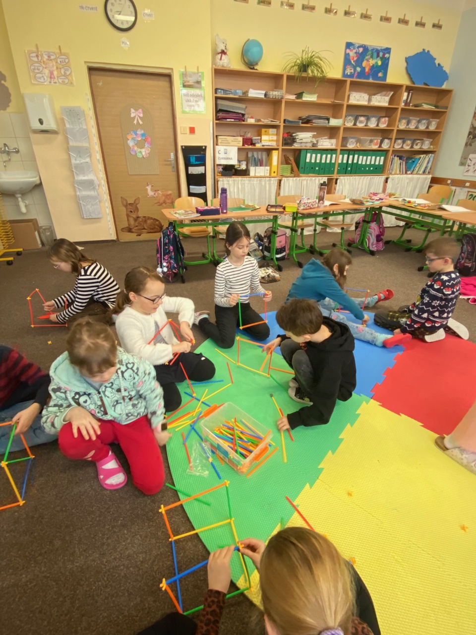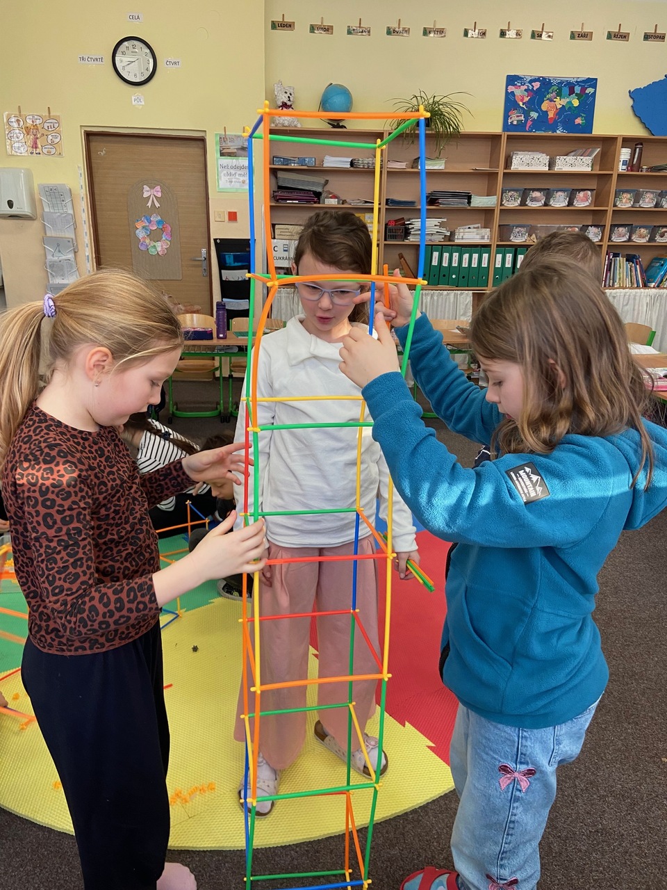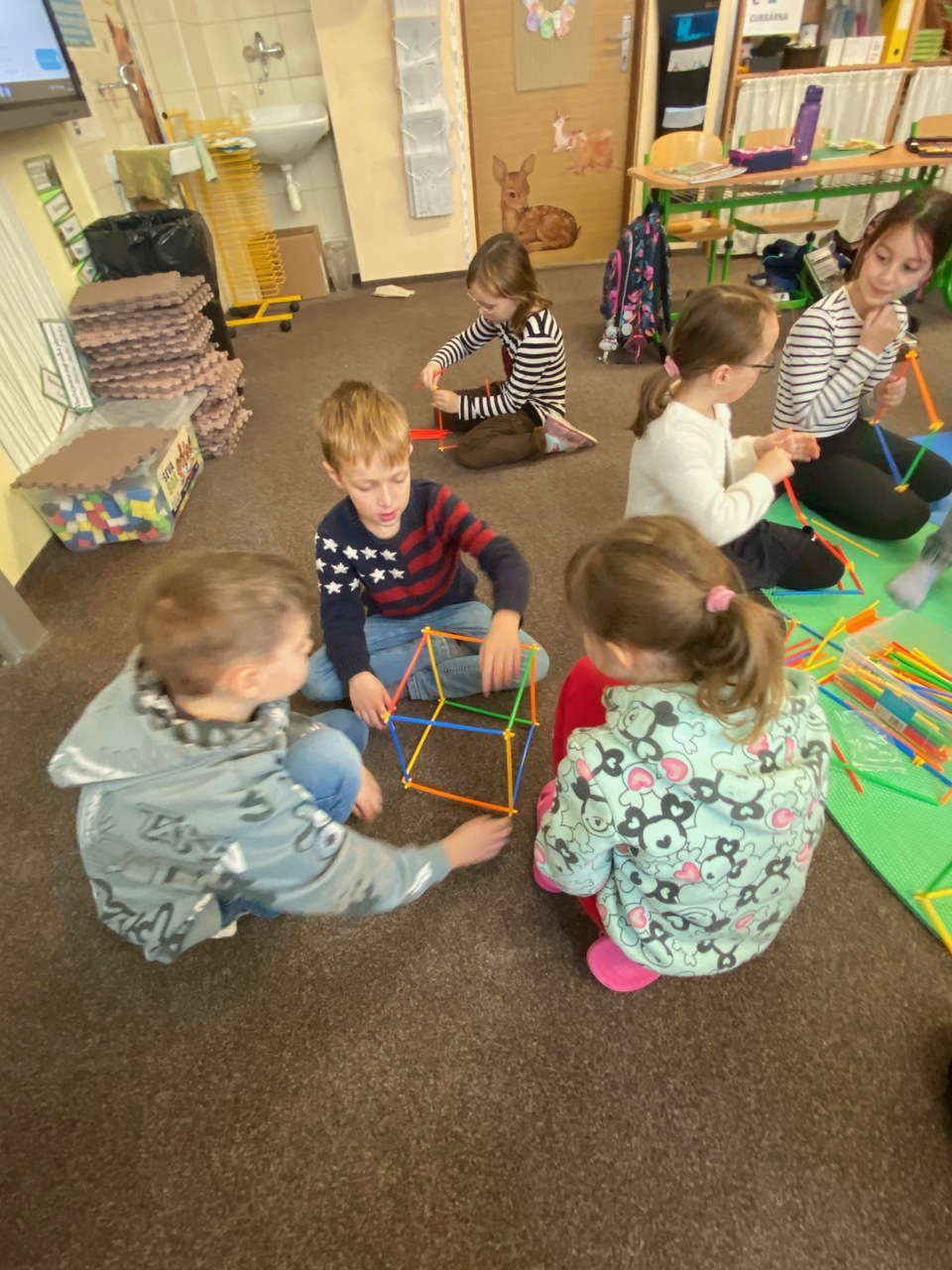 Výuka o krychli probíhala ve II.B prakticky, druháčci skládali krychle z různých "stavebnic", moc je to bavilo.