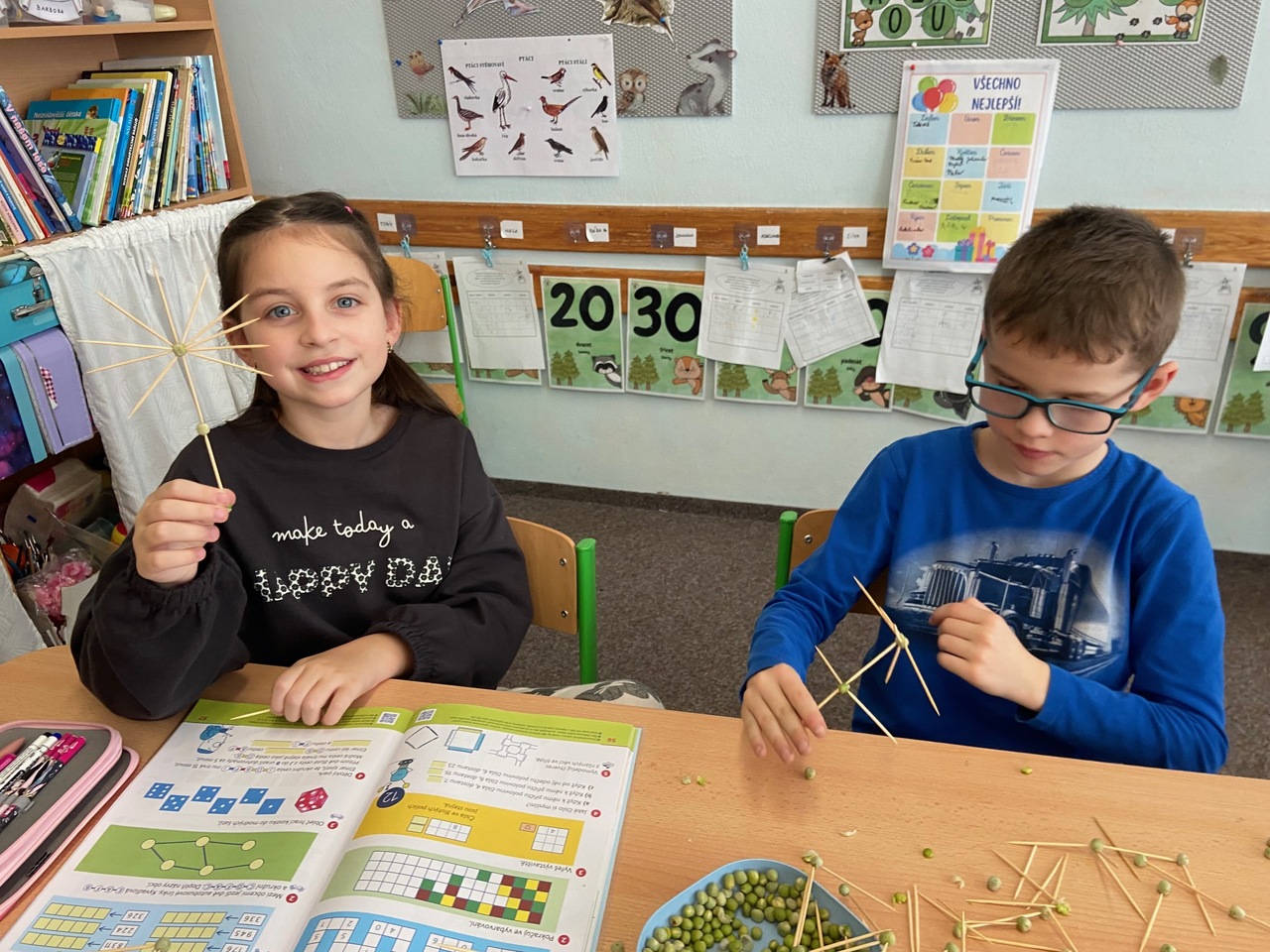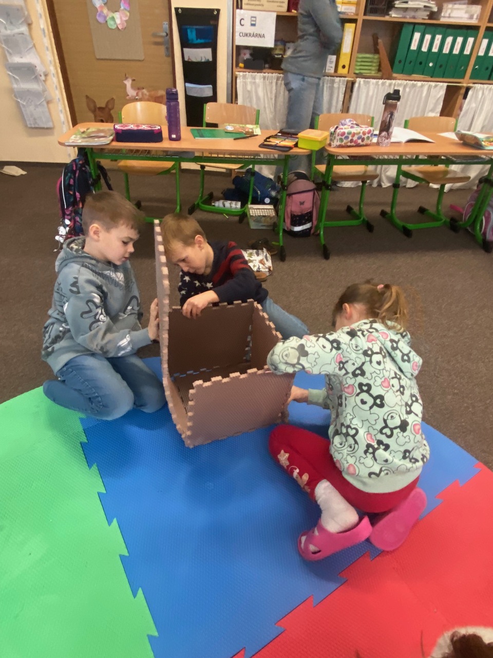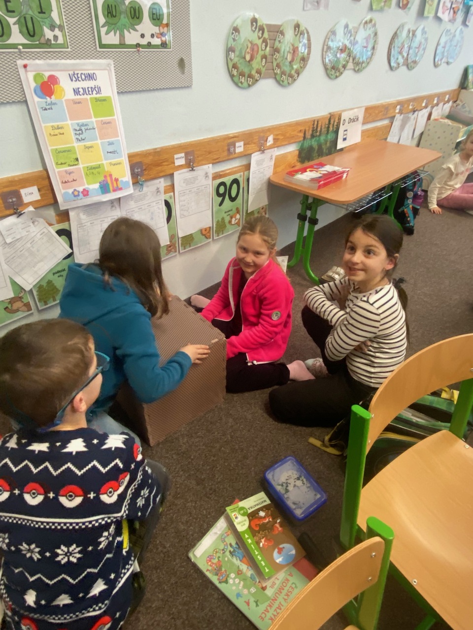 Výuka o krychli probíhala ve II.B prakticky, druháčci skládali krychle z různých "stavebnic", moc je to bavilo.