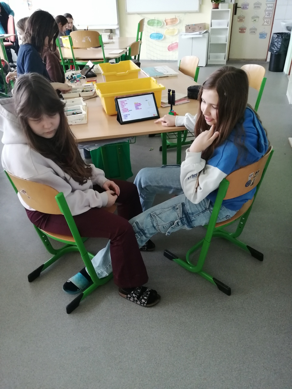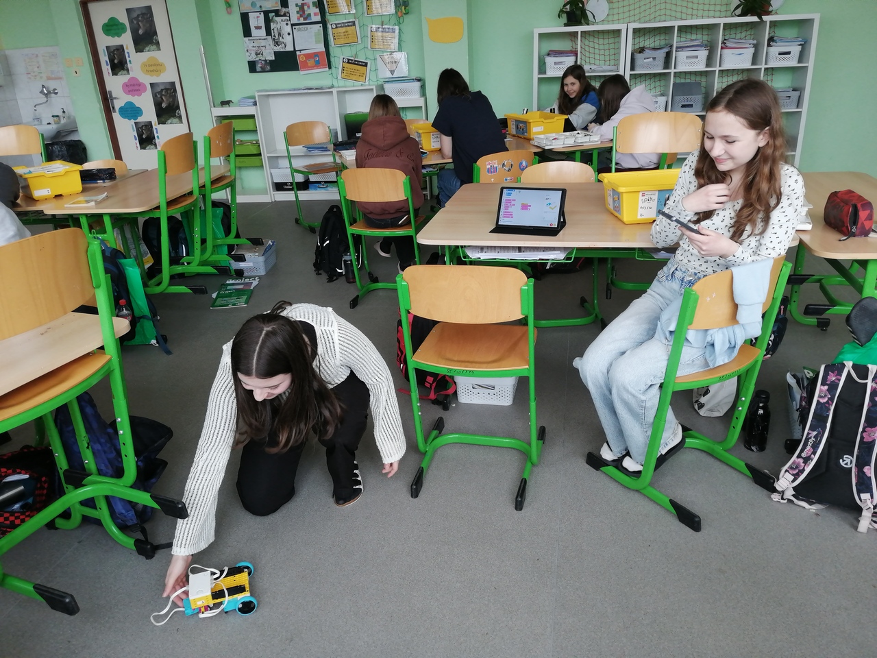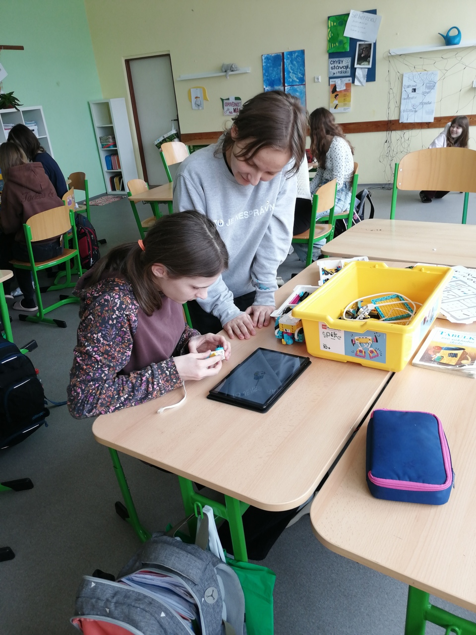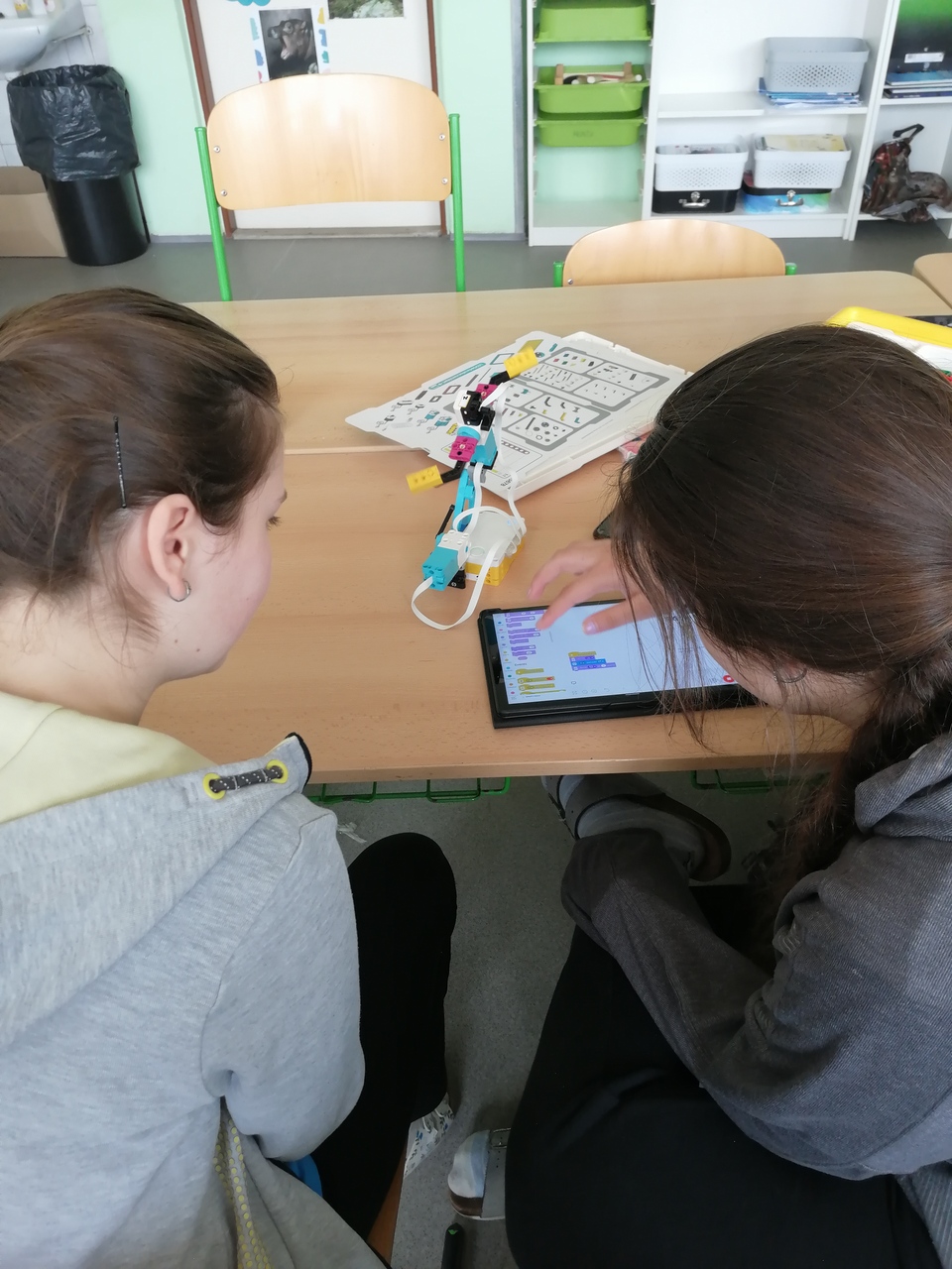 Žákyně si vyzkoušeli nejen sestavení modelů, ale také jejich následné naprogramování. Přestože jsme na začátku narazili na menší úskalí, podařilo se nám nakonec dosáhnout pěkných výsledků – vznikla například tančící postava, auto a další zajímavé modely.